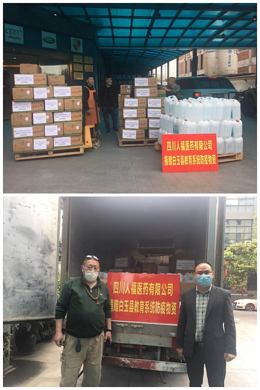 目前,我國(guó)新冠疫情仍在防控中,地處四川省甘孜藏族自治州的白玉縣防疫物資嚴(yán)重匱乏,急需各方支援。4月1日,為助力貧困地區(qū)將戰(zhàn)“疫”進(jìn)行到底,四川人福醫(yī)藥有限公司積極踐行“積善揚(yáng)德、助困扶弱”的社會(huì)責(zé)任,向白玉縣教育系統(tǒng)捐贈(zèng)了消毒液1.2噸、酒精830公斤、隔離衣100件、隔離面罩100個(gè)等防疫物資。希望這份愛心能給藏區(qū)人民帶去一絲溫暖和一份守護(hù),緩解該地區(qū)防疫物資缺、采購(gòu)難的困境。 |